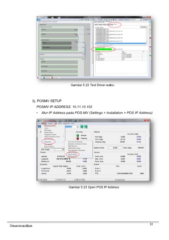 Gambar 5.22 Test Driver waktu 3). POSMV SETUP POSMV IP ADDRESS: 10.11.10.102 • Atur IP Address pada POS-MV (Settings > Installation > POS IP Address) Gambar 5.23 Open POS IP Address 22