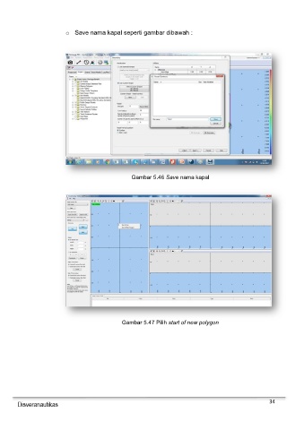 o Save nama kapal seperti gambar dibawah : Gambar 5.46 Save nama kapal Gambar 5.47 Pilih start of new polygon 34