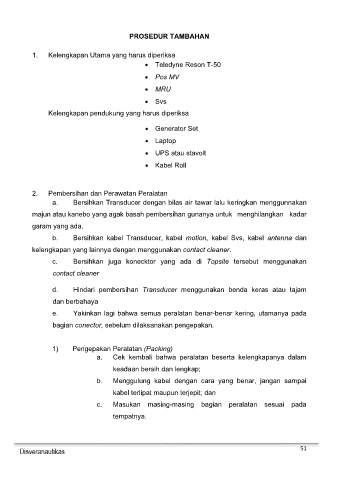 b. Bersihkan kabel Transducer, kabel motion, kabel Svs, kabel antenna dan