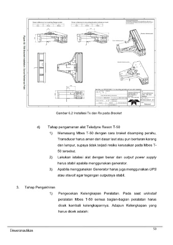 1) Memasang Mbes T-50 dengan cara braket disamping perahu,