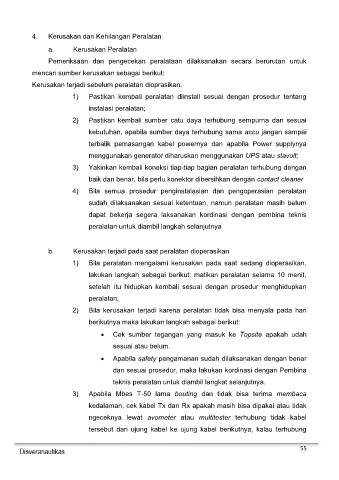 1) Pastikan kembali peralatan diinstall sesuai dengan prosedur tentang