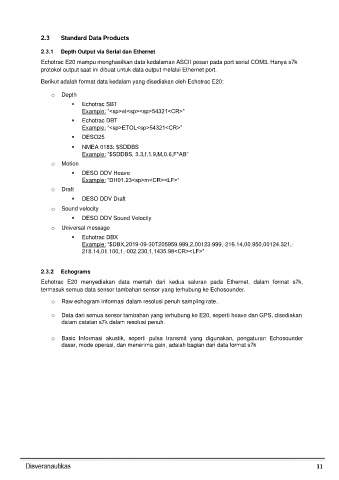 Echotrac E20 mampu menghasilkan data kedalaman ASCII pesan pada port serial COM3. Hanya s7k