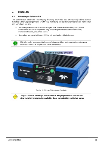 o Buat cukup ruangan disekitar unit E20 untuk memberikan sirkulasi udara.