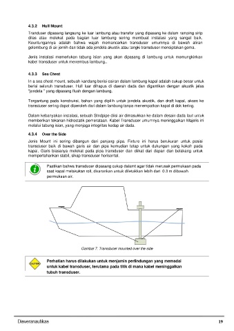 Tranduser dipasang langsung ke luar lambung atau transfor yang dipasang ke dalam ramping sirip