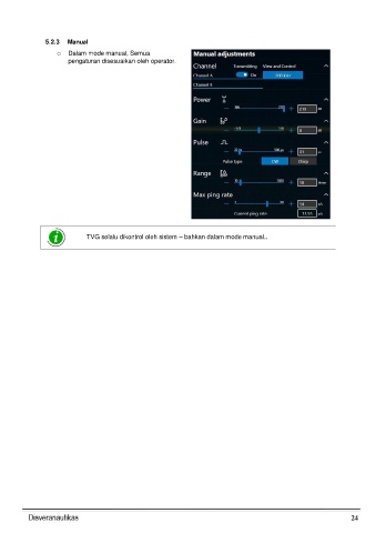 5.2.3 Manual o Dalam mode manual, Semua pengaturan disesuaikan oleh operator. TVG selalu dikontrol oleh sistem – bahkan dalam mode manual.. 24