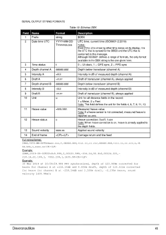 7 Depth channel B ddddd.ddd Depth below transducer (channel B)