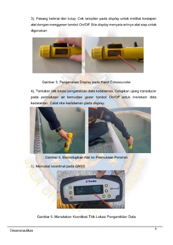 4). Tentukan titik lokasi pengambilan data kedalaman. Celupkan ujung transducer