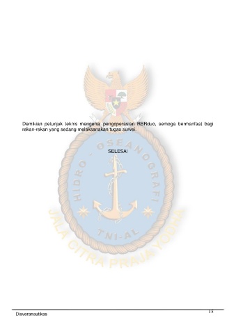 Demikian petunjuk teknis mengenai pengoperasian RBRduo, semoga bermanfaat bagi rekan-rekan yang sedang melaksanakan tugas survei. SELESAI 15
