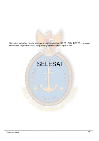Demikian petunjuk teknis mengenai pengoperasian DGPS R9S ROVER, semoga bermanfaat bagi rekan-rekan yang sedang melaksanakan tugas survei. SELESAI 30