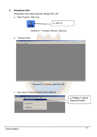 6. Pengolahan Data Pengolahan Data dapat dilakukan dengan ISE 2.92 a. Buka Program Tide Long Gambar 6 1 Tampilan Shortcut TideLong b. Tampilan Awal Gambar 6 2 Tampilan awal ISE 2.92 c. Buat Sound Velocity Profiller Secara Manual 37