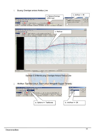 i. Buang Overlaps antara Kedua Line Gambar 6 9 Membuang Overlaps Antara Kedua Line j. Aktifkan Tool Box Untuk Zoom untuk Mengedit Bagian Tertentu 44